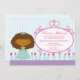 Ce invitation d'anniversaire de 5x7 pour filles a un thème de princesse mignonne. Il y a une fille afro-américaine devant un château. En haut, vous pouvez facilement customiser les informations sur la fête. design par STOCKBERRY STUDIO