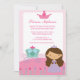 Ce invitation d'anniversaire de 5x7 pour filles a un thème de princesse mignonne. Il y a une coiffeuse brune devant un château. En haut, vous pouvez facilement customiser les informations sur la fête. design par STOCKBERRY STUDIO
