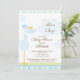 Commencez votre baby shower de bébé outre de la droite avec notre invitation mignonne de baby shower de cigogne. L'invitation comporte une cigogne adorable tenant un paquet bleu de bébé d'ensemble de joie sur un arrière - plan blanc croquant avec des nuages et une frontière de rayure bleue. Le dos de l'invitation de baby shower de garçon comporte assortir l'arrière - plan bleu et vert moderne et élégant de rayure. Visitez notre magasin pour une grande sélection d'invitation de baby shower pour des garçons. conceptions de ©Blackleaf