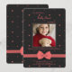 Une invitation douce en noir dramatique avec des cœurs rouges et une fenêtre photo pour mettre en vedette votre petite Saint-Valentin. (<a href='http://www.freepik.com/free-vector/valentine-card-with-pink-bow-and-hearts_1041543.htm'>Conçu par Freepik</a>). <br/><br/>La carte est facile à personnaliser avec votre libellé, police, couleur de police et le choix entre six types de papier.<br/><br/>Pas exactement ce que vous cherchez ? Tous nos produits peuvent être conçus sur mesure pour répondre à vos besoins sans frais supplémentaires.<br/><br/>Contactez-nous simplement à heartfelthelper@gmail.com<br/><br/>Produits coordonnés disponibles :