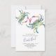 Cette invitation de thème marin est disponible en petite taille pour un budget limité. Elle présente les mots Crab Boil dans une typographie manuscrite élégante avec les détails de l'événement dans une police sérif grise charbon classique sur un fond blanc croquant. Ma peinture originale de crabe à l'aquarelle dans des nuances de rouges, de bleus et de verts orne le devant. La carte d'invitation est réversible avec une couleur bleu marine complémentaire au verso. Un choix côtier chic et balnéaire pour un boil country bas de style décontracté, une fête du 4 juillet ou une réunion de famille. Pour voir plus de tailles et de créations de Victoria Grigaliunas, visitez DoTellABelle sur Zazzle.
