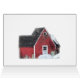 Une petite maison au milieu d'un paysage hivernal aux arbres colorés.