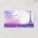 A petite RSVP card from the Amour Éternel à la Parisienne collection, designed for modern convenience and timeless romance. Featuring a dreamy watercolor Eiffel Tower scene in soft purples and blush, this 3.5" x 2" card invites guests to respond online via a QR code. Fully customizable text ensures seamless planning with Parisian charm in a compact format. Perfect for slipping into invitations with elegance and ease.