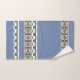 Décor de bain design et moderne dans les tons bleu, rose et orange, noir et vert épais.