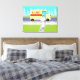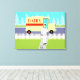 Si vous avez soif d'un design moderne du milieu du siècle, cette Petite Ville Retro Milkman Stretched Canvas Print est pour vous! Le style des années 60, minimaliste design d'art, comprend un milkman dédié qui fait ses rondes matinales. L'homme blond porte un pantalon blanc laiteux, une chemise et un casquette avec une cravate arc noir, une ceinture et des chaussures. Ce livreur de calcium et de vitamine D se déplace sur le trottoir avant, transportant dans des bouteilles de verre, un approvisionnement hebdomadaire de lait frais sain d'une famille. Le journal du matin est toujours sur le trottoir. Ne vous inquiétez pas. Seules les bonnes nouvelles sont autorisées dans cette ville ! Le trottoir est entouré par le type de pelouse verte que l'on trouve uniquement dans les petites villes et banlieues. Il y a aussi une clôture blanche pour les piquets de grève. Dans la rue, on voit le doux tour du milkman ! C'est un camion jaune crémeux, au lait avec une bande rouge sur le côté et des lettres rouges qui dit, "LAIT". De l'autre côté de la rue, on aperçoit un ciel d'aqua et les silhouettes bleu clair des cèdres. Ce dessin animé kitsch ressemble à une scène tirée d'une vieille sitcom de télévision. Apportez le gâteau jaune au glaçage au chocolat, le gâteau officiel de toutes les femmes au foyer de la télévision et de leurs familles privilégiées ! Construire des os forts n'a jamais été aussi bon !