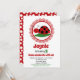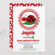 L'invitation à l'anniversaire de cette jeune fille présente une coccinelle rouge et noire sur une feuille verte avec un sourire amusant et de jolies antennes bouclés.