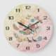 Belle Petite Oiseau Fleurs Feuilles Mur Rose Horloge