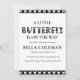 Fêtez l'arrivée de votre petit papillon avec ces invitations fantaisistes à l'aquarelle. Avec des fleurs délicates et un design de papillons charmant, ces invitations sont parfaites pour un baby shower boho-chic. Les couleurs douces et les éléments d'inspiration jardin créent une atmosphère magique.