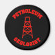 Petroleum Geologist - black magnet with red collegiate style lettering and oil derrick graphic.