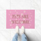 "Pets Are Welcome" Cats & Dogs Pawprints Pink Doormat