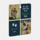 Modern new pet christmas ornament featuring 2 photos of your dog or cat, classic blue squares, with the saying "my first christmas in my forever home", the pets name, year, and 2 paw prints.