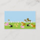 Cute Petting Zoo Business Card for your pony rides and petting zoo business. Zoo business card features adorable cows, sheep, pigs, baby chickens chicks and horses set on a green pasture with a white fence and blue sky.