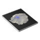 This awesome notepad features a photograph of a petunia flower that has been manipulated to make the centre of the flower glow bright blue. The outer petals are white and the veins running out from the centre of the flower also glow blue. The flower is on a black background to make it stand out.