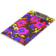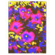 A vibrant blue, purple, red, yellow and black pop art design of petunias.
