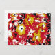 A vibrant red, yellow, black and white pop art design of petunias.