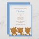 Commencez votre événement outre de la droite avec notre nounours adorable de bébé que l'invitation de baby shower comportant les trois les plus doux petits concerne un arrière - plan blanc et par bleu piqué. Grand invitation pour votre baby shower de bébé. Disponible dans le rose pour des filles et d'autres styles et les couleurs dans notre magasin @ www.limelightinvitations.com. Personnalisez juste avec votre information et vous êtes tous placez pour aller ! Articles assortis comprenant l'affranchissement de baby shower, autocollants de faveur, merci vous carde et remercie que les autocollants sont également disponibles dans notre magasin. conceptions de ©Zenware