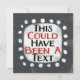 Un joli design typographique qui dit "Ceci aurait pu être un texte". C'est du texte en noir et rouge sur un rectangle blanc avec des points blancs amusants autour, le tout sur un arrière - plan gris.