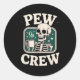Pew Crew Skeleton With Coffee, Funny Church Tee Classic Round Sticker