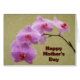 Pink phalaenopsis orchids with the words Happy Mother's Day underneath. Inside is blank.