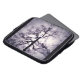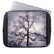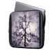 A photograph of a winter tree with the sun behind it, digitally manipulated to look like a fantastical spectre with its hand upraised, the bright light shining through the branches and darker grey and lavender clouds swirling around the "fingers".
