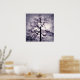 A photograph of a winter tree with the sun behind it, digitally manipulated to look like a fantastical spectre with its hand upraised, the bright light shining through the branches and darker grey and lavender clouds swirling around the "fingers".