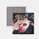 A pink and gold mardi gras mask with butterflies surrounding the eyes. This magnet is perfect for any refrigerator.