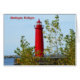 Le beau phare de Muskegon est encadré de feuilles d'automne. Cette photo fait un grand carte pour notes.
