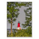 Le phare rouge octogonal de Menominee Pierhead se dresse contre un ciel bleu clair et une eau bleu foncé. Il se trouve du côté Michigan de la frontière avec le Wisconsin, sur le lac Michigan. En 1927, le phare a été démonté pour construire un bâtiment en béton carré destiné à abriter une orne électrique. Le phare de 1877 fut ensuite réassemblé au-dessus du bâtiment carré.
