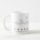 Pharma spelled out in amino acids as P H A R M A (Proline Histidine Alanine Arginine Methionine Alanine) on a mug for the scientist in you.