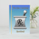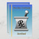 This sky blue and gold retirement invitation is decorated with a a mortar and pestle.