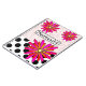 Pharmacist Whimsical Pink and Orange flowers and pharmacist abbreviations background with black and white polka dots. Artsy and unique gifts for pharmacists.