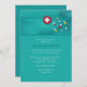 A teal graduation invitation featuring colourful capsules of medicine and a medical cross. (FP) <br/><br/>The card is easy to customize with your wording, font, font colour, paper shape options and choice of six paper types.<br/><br/>Not exactly what you're looking for? All our products can be custom designed to meet your needs at no extra charge.<br/><br/>Simply contact us at askpixieprints@aol.com.<br/><br/>Coordinating products available: Just ask us!