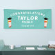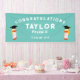 Creative school of pharmacy grad congratulations banner for pharmacist graduation featuring prescription bottles with caps. To personalize edit text to add name and year or otherwise customize.