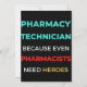 Pharmacy Technician Because Even Pharmacists Need Heroes design. This is a short funny quote which is great as an appreciation gift for Pharmacy Technicians. Also suitable as Pharmacy Technician Gifts.