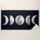 A beautiful beach towel featuring phases of the moon over a galaxy background.