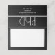 Place cards for a PhD graduation party with a black and white design. This item is part of a graduation party collection that includes an invitation, photo announcement, paper napkins, place cards, and more. Customize these items, add them to your cart, and celebrate this major achievement.