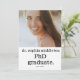 A simple photo with modern large typerwriter font is the basis of this PhD Graduate graduation personal party invitation.