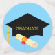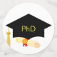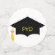 Elegant PhD graduation cap and glittering stars on blue and white Table Confetti. Text ready to be personalized. Ideal for graduations! Shine like a star!