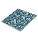 Large Ceramic tile in a William Morris, Art Nouveau wallpaper design of pheasants and hares set among leaves, vines and flowers - subtly textured white on an indigo / denim blue background