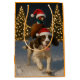 Humorous Christmas gift bag featuring a pheasant and Springer Spaniel in an apparent truce over the Christmas period! The pheasant is riding the spaniel in a snowy scene with Christmas trees twinkling in the background.