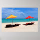 Red and yellow umbrellas on the tropical island of Phi Phi, Thailand