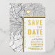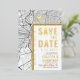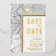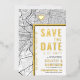 A unique save-the-date invitation card featuring a map of the city of Philadelphia, Pennsylvania. It features several unique features that make an impression on your future guest, including the names of the bride and groom, the city name, and the words "Save the Date" in gold foil. A gold foil heart symbol pinpoints your location of love in the city. The city map is on the front and reverse sides and can be scaled and moved around. All elements of this invite are unlocked, so have fun being creative and making it fit your style.