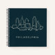 This design features a hand drawn illustration of the Philadelphia skyline on a dark blue background.