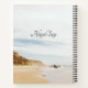 inspirational quote scripture notebook, journal depicts a simple nature photograph with blue skies, a sandy ocean beach and rock formation. It features Bible Verse Philippians 1:6, "Being confident of this, that GOD who has begun a good work in you will complete it until the day of Jesus Christ." Photograph by Zach Camp.