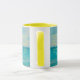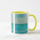 This two-tone mug features a tan harmoni print font with yellow letters showcasing the "Philippians 1:6 KJV" bible scripture verse over a background picture displaying a view of the ocean with nice blue water from the shoreside under a partly cloudy sky. This verse is referencing the Book Of Philippians 1st chapter showing the 6th verse in this bible scripture quote theme from the King James bible. The rim & handle are glazed in matching colours available in 11-ounce or 15-ounce sizes microwave and dishwasher safe ceramic construction.