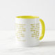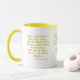 This two-tone mug features a tan harmoni print font with yellow letters black outline showcasing the "Philippians 1:6 KJV" bible scripture verse over a white background. This verse is referencing the Book Of Philippians 1st chapter showing the 6th verse in this bible scripture quote theme from the King James bible. The rim & handle are glazed in matching colours available in 11-ounce or 15-ounce sizes microwave and dishwasher safe ceramic construction.