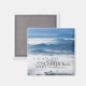 Christian inspirational quote scripture magnet depicts a nature photograph with blue mountains coved with a foggy cloud. It features Bible Verse Philippians 4:13, "I can do all things through Christ who strengthens me."