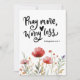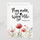 La carte de voeux plat avec citation inspirante scripture représente un design fleur sauvage d'aquarelle fleurie avec des pavots rouges simples et de la verdure. Il présente une citation chrétienne encourageante de la Bible Verse Philippiens 4:6-7, "Pray More Worry Less." Les versets sont imprimés en entier sur le dos, "Priez pour tout; dites à Dieu vos besoins... Si vous faites cela, vous vivez la PAIX DE DIEU qui est beaucoup plus merveilleuse que l'esprit humain ne peut comprendre." La salutation, la prière peut être personnalisée ou supprimé pour un message manuscrit.