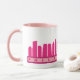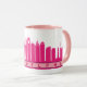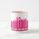 This mug features a stylized rendering of Philadelphia's ever-changing skyline, including new skyscrapers to be completed in 2019 -- in a splash of pink!. This design is also available in 8 other colour schemes, so mix and match with other variations to make yourself a related set of matching Philly mugs in different colours!