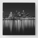 This is the beautiful skyline of the city of Philadelphia, taken at night from across the Delaware River at the Camden waterfront. The architecture of the skyscrapers and buildings of Philly are on display in this black and white photo. Centre City, the downtown area of Philadelphia, is the focus of this photograph. The lights of the city cast reflections on the water.